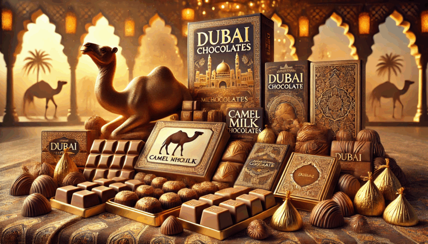 ドバイで特に人気の高いお土産を紹介します。まずは「キャメルミルクチョコレート」。ドバイ発のブランドAl Nassmaの製品で、ラクダのミルクを使った独特のコクとパッケージが魅力です。リピート買いする旅行者も多く、日本への輸出も行われています。